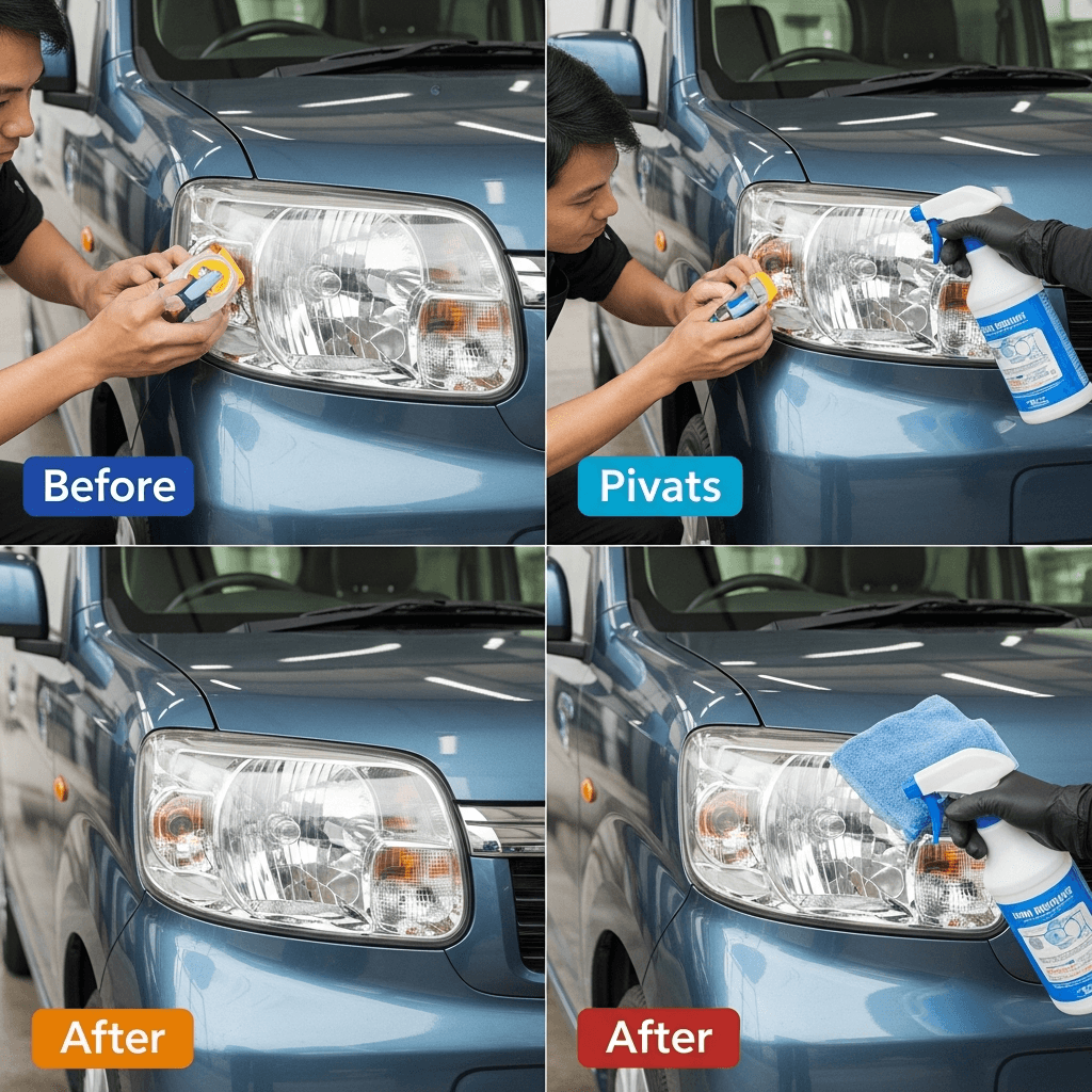 ヘッドライト黄ばみ除去+ボディ鉄粉除去で輝き復活!