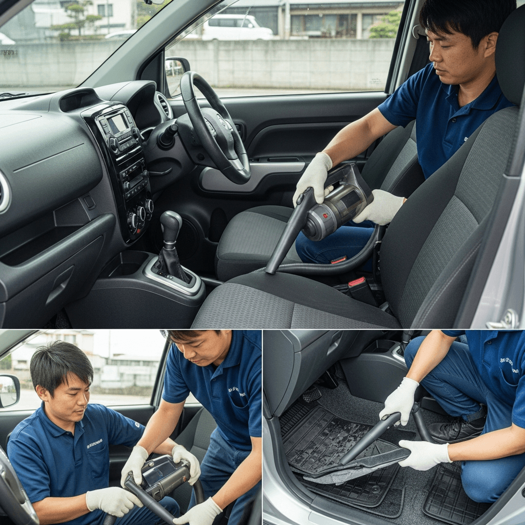 ポルテは第一印象が査定の8割を決めます。シート隙間のゴミ除去、マット洗浄、樹脂パーツ艶出しで新車級の清潔感に。特に臭いゼロなら「禁煙車」扱いで+5~8万円UP。