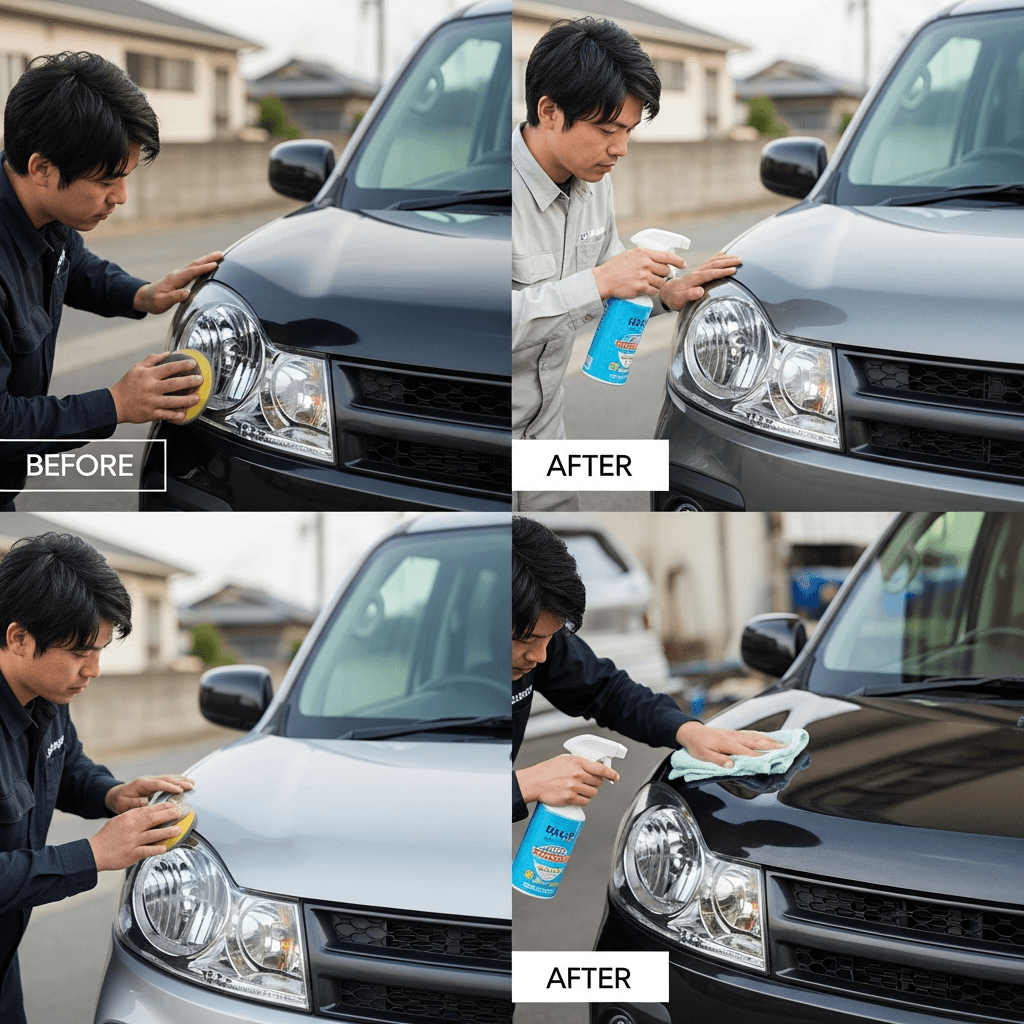 ポルテはヘッドライトの黄ばみとボディの鉄粉が第一印象を損ねます。研磨+鉄粉除去クリーナー+ワックスで輝きを取り戻せば「程度良好」と判断され+4~7万円の効果。