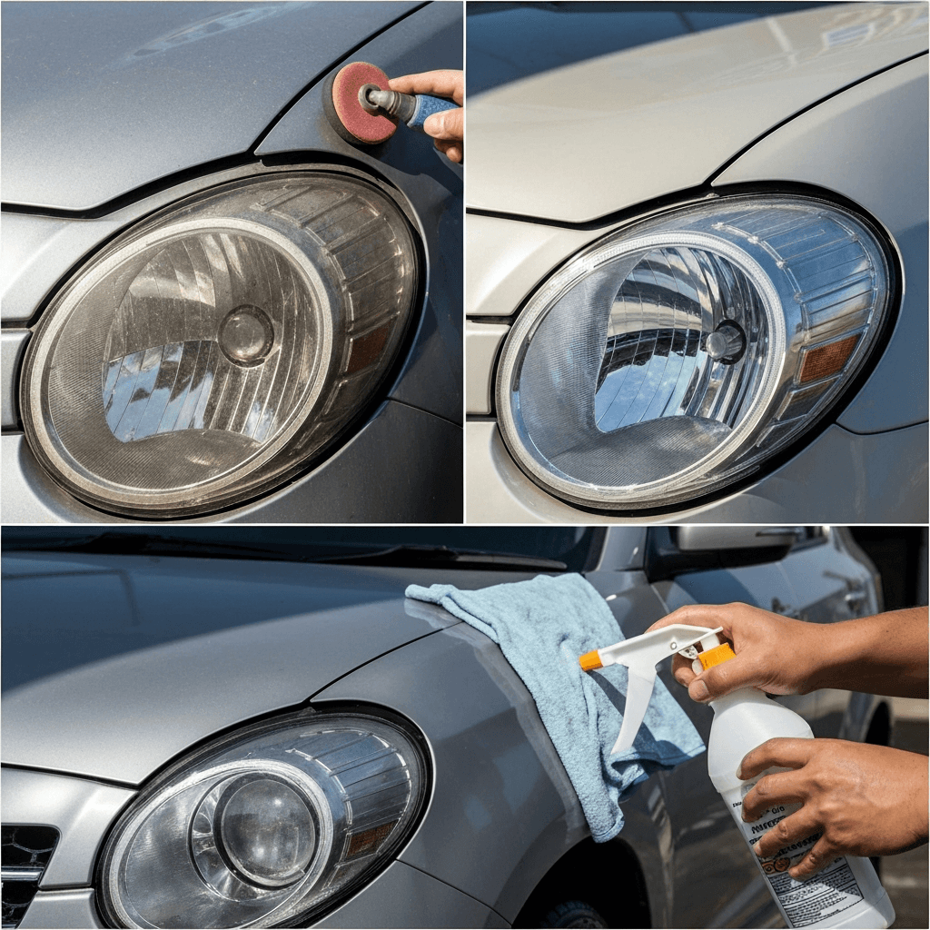 ヘッドライト黄ばみ除去+ボディ鉄粉除去で輝き復活!