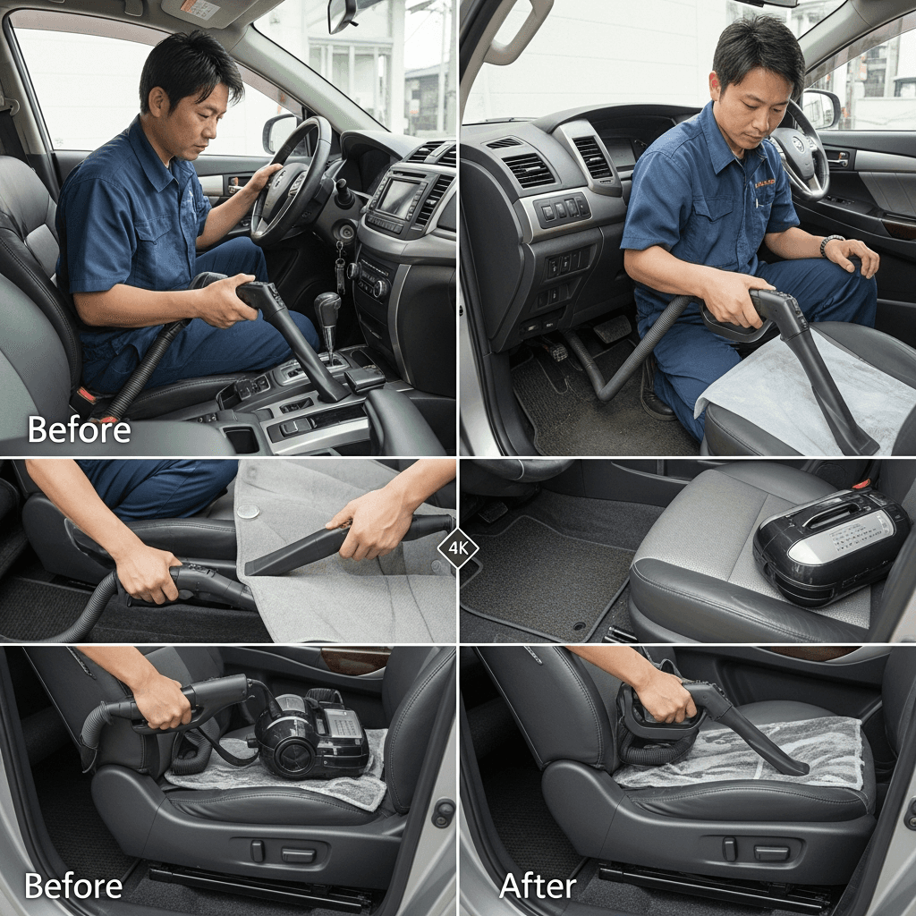 プレーリーリバティは第一印象が査定の8割を決めます。シート隙間のゴミ除去、マット洗浄、樹脂パーツ艶出しで新車級の清潔感に。特に臭いゼロなら「禁煙車」扱いで+5~8万円UP。