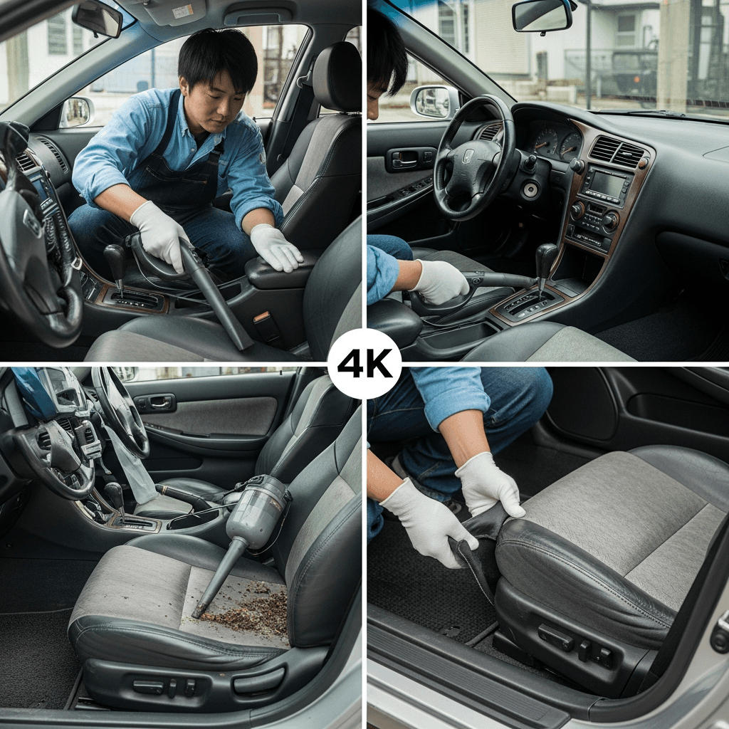 プレリュードは第一印象が査定の8割を決めます。シート隙間のゴミ除去、マット洗浄、樹脂パーツ艶出しで新車級の清潔感に。特に臭いゼロなら「禁煙車」扱いで+5~8万円UP。