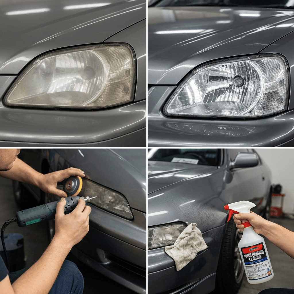 ヘッドライト黄ばみ除去+ボディ鉄粉除去で輝き復活!