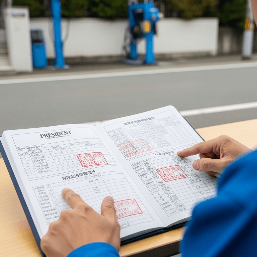 プレジデントの整備記録簿に定期点検(12ヶ月・24ヶ月)の履歴が全て記載されていれば「管理の行き届いた車」と高評価。特にエンジンオイル交換履歴は重要で+6~9万円の効果。