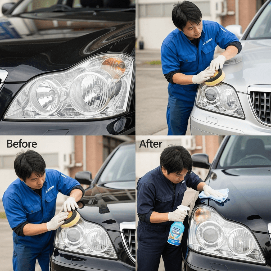 ヘッドライト黄ばみ除去+ボディ鉄粉除去で輝き復活!