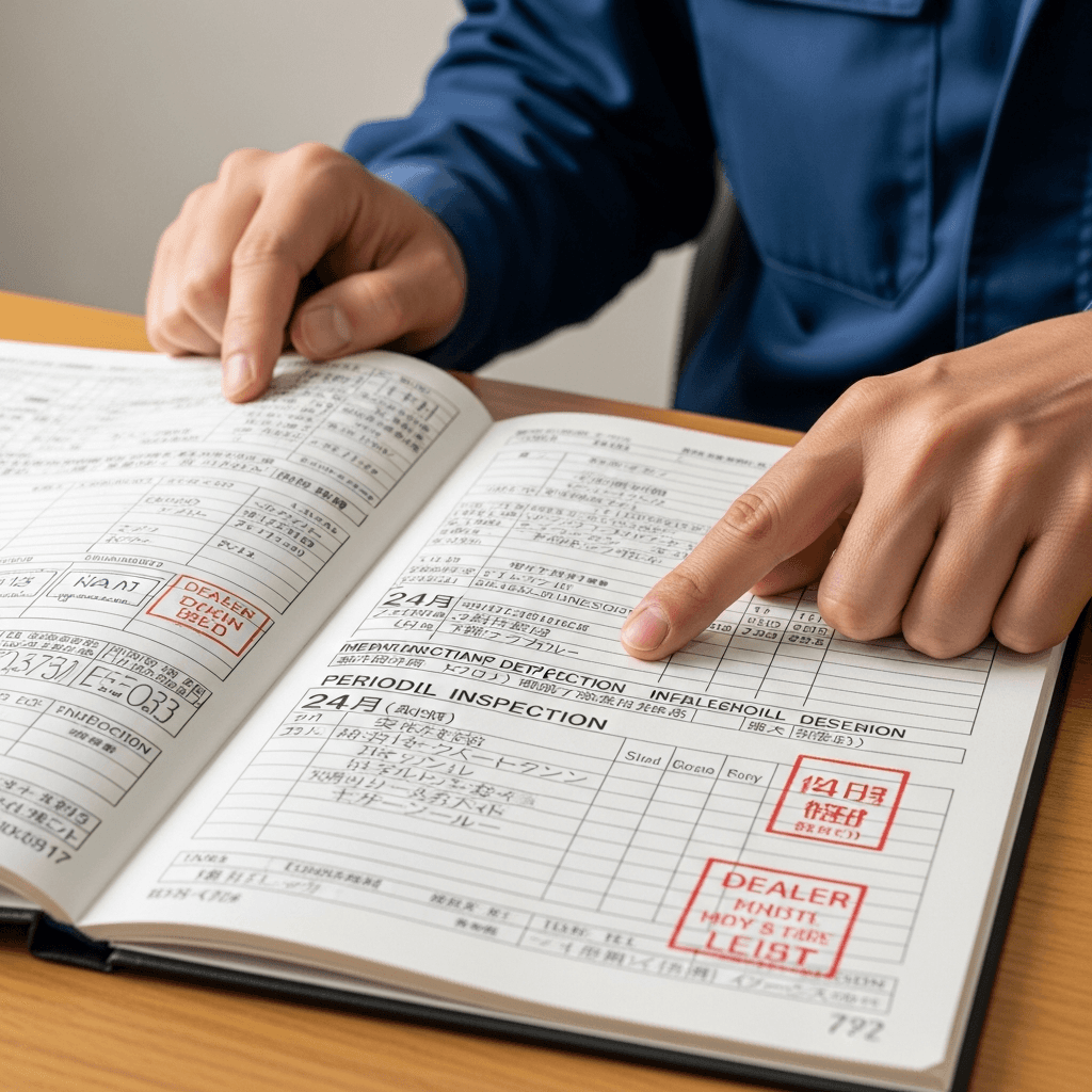 プリメーラカミノワゴンの整備記録簿に定期点検(12ヶ月・24ヶ月)の履歴が全て記載されていれば「管理の行き届いた車」と高評価。特にエンジンオイル交換履歴は重要で+6~9万円の効果。
