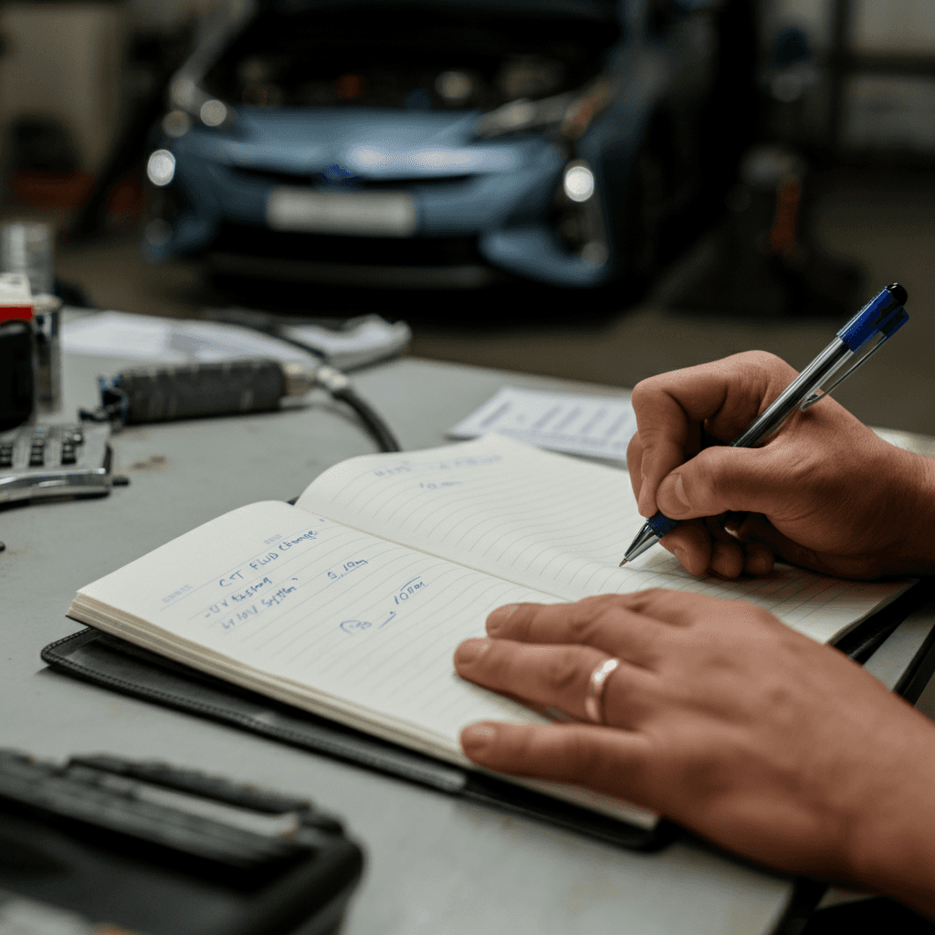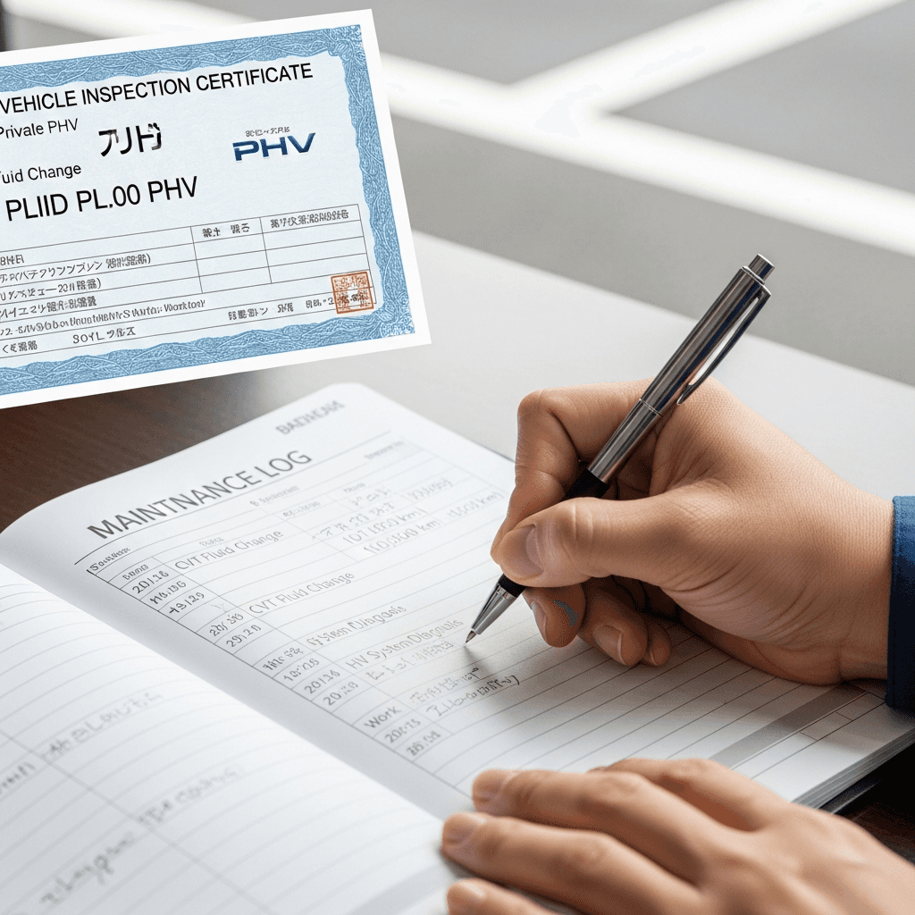 整備記録簿にCVTフルード交換やHVシステム診断の履歴を明記。特に「10万km時CVT交換済」「バッテリー冷却系点検済」の記載があれば査定士の信頼度が急上昇し、+6~10万円の価値創出が可能です。