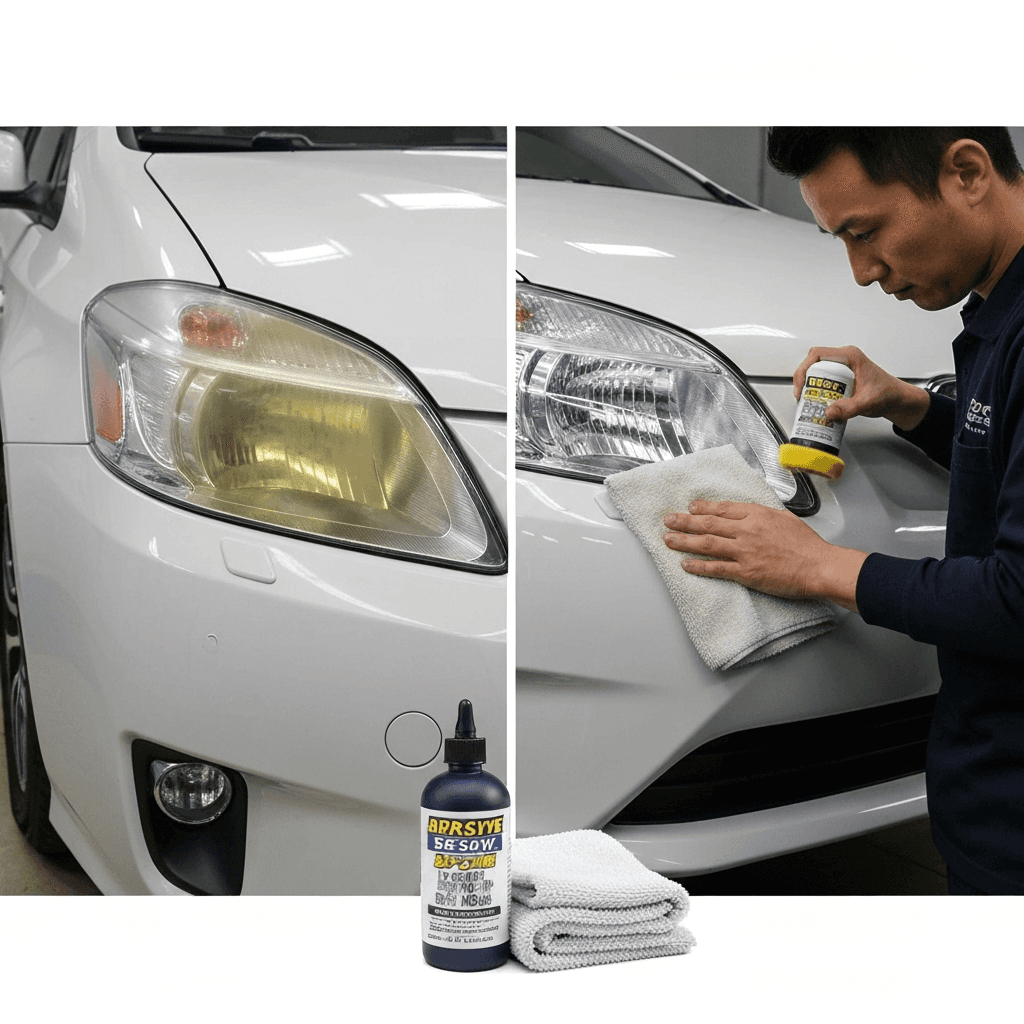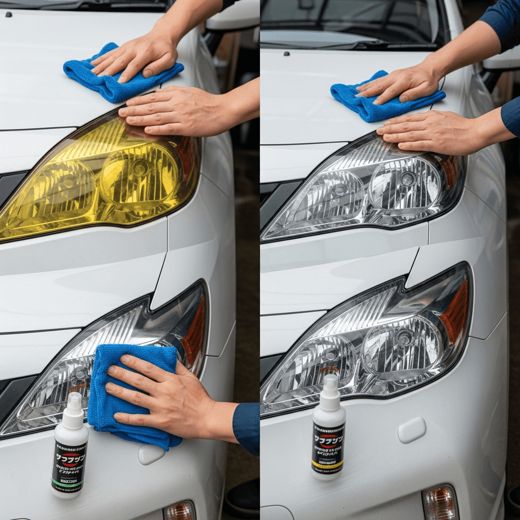 ヘッドライト黄ばみ除去で新車の輝きを取り戻す!