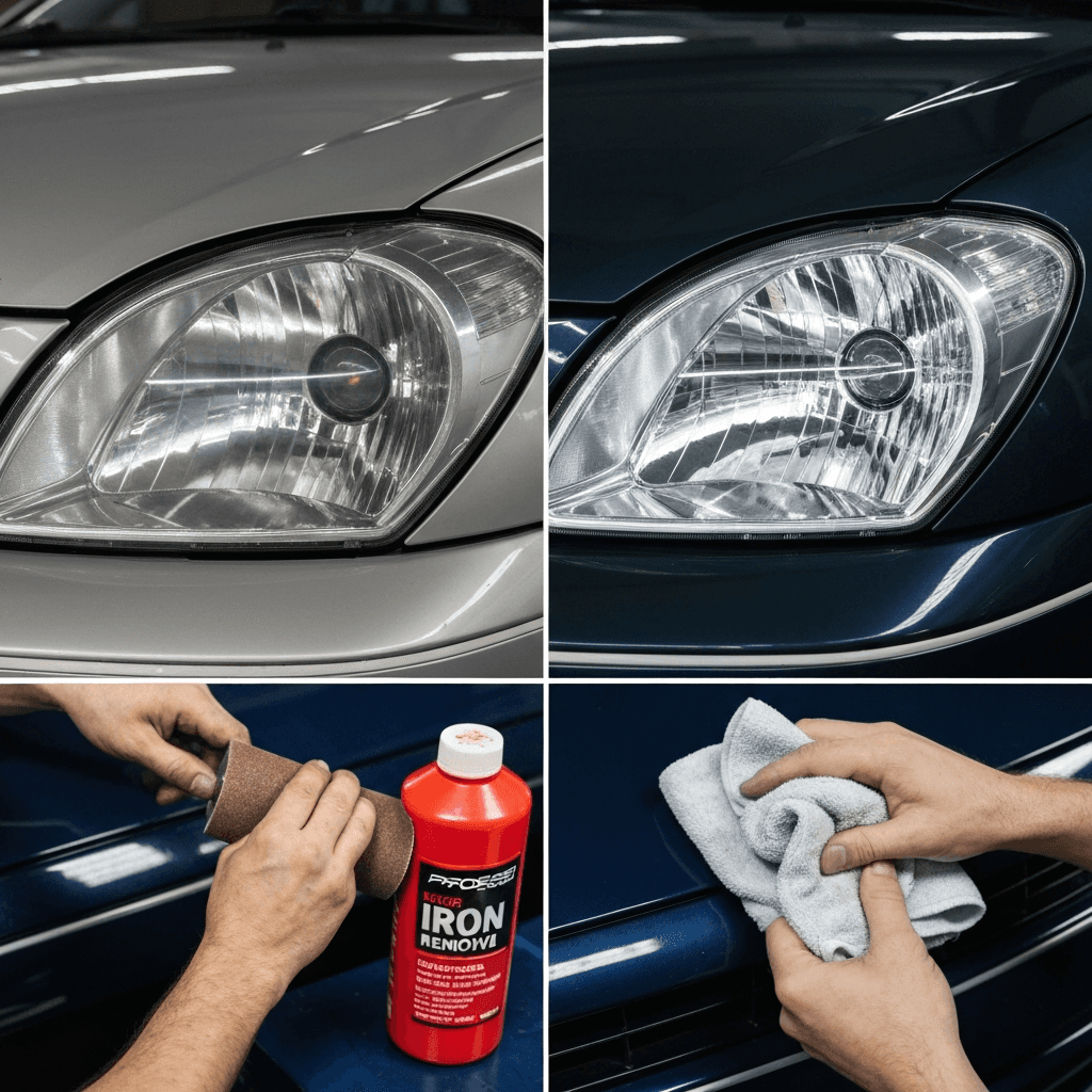 ヘッドライト黄ばみ除去+ボディ鉄粉除去で輝き復活!