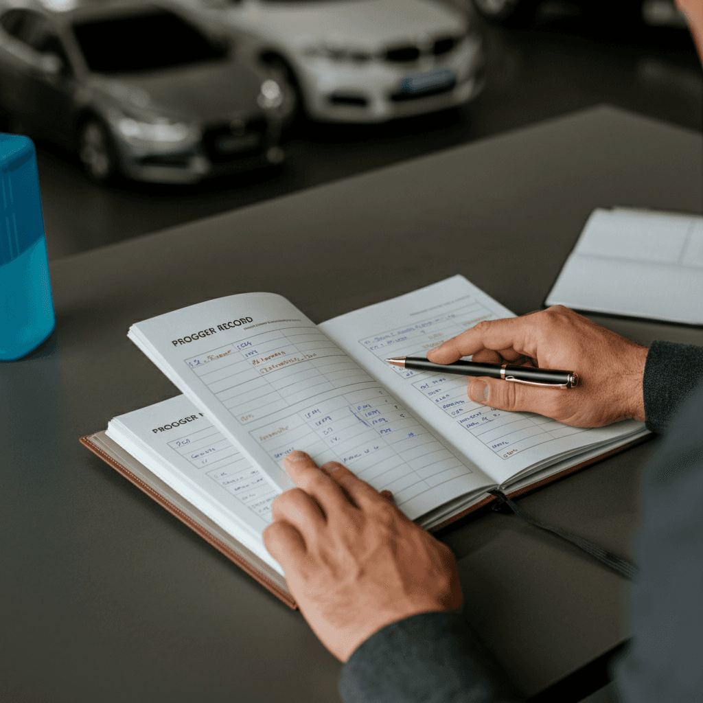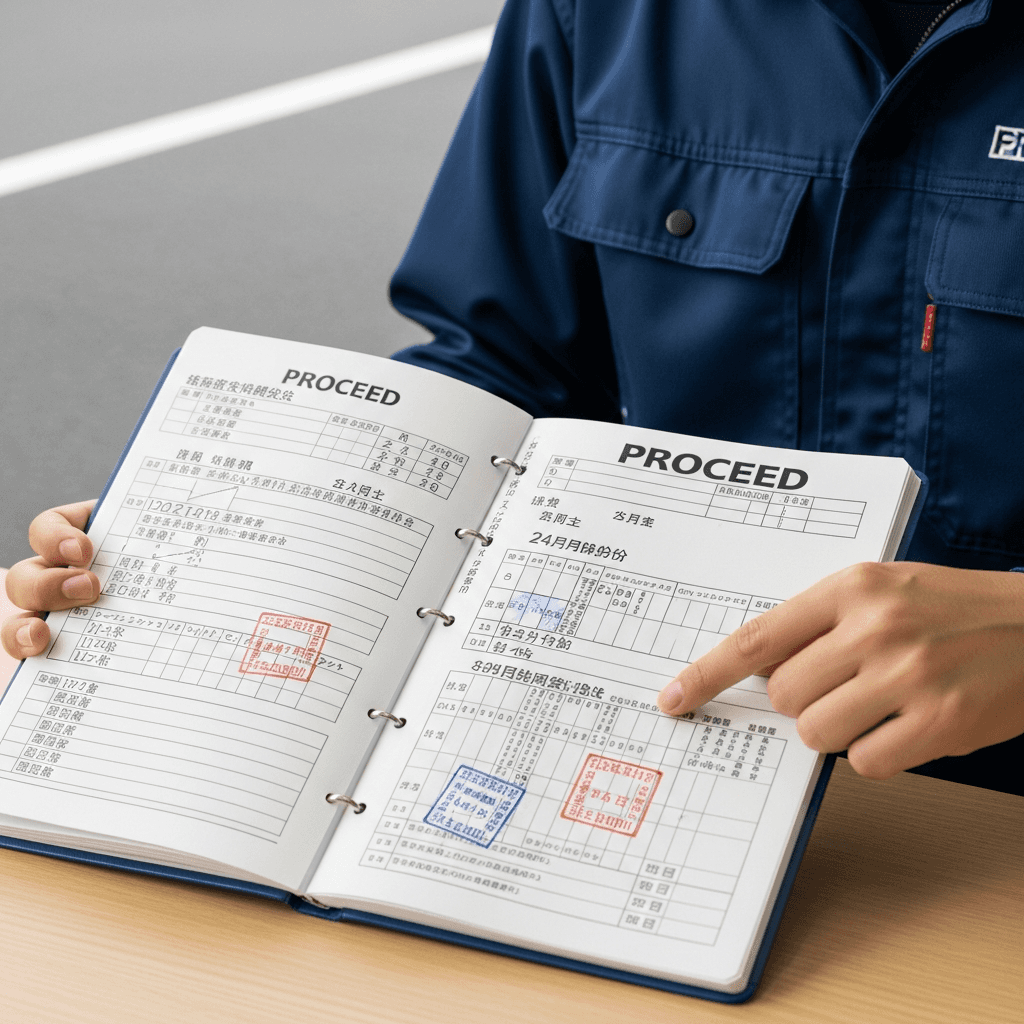 プロシードの整備記録簿に定期点検(12ヶ月・24ヶ月)の履歴が全て記載されていれば「管理の行き届いた車」と高評価。特にエンジンオイル交換履歴は重要で+6~9万円の効果。
