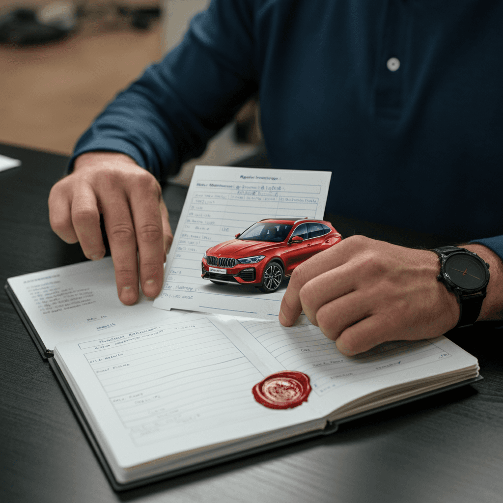 プロシードレバンテの整備記録簿に定期点検(12ヶ月・24ヶ月)の履歴が全て記載されていれば「管理の行き届いた車」と高評価。特にエンジンオイル交換履歴は重要で+6~9万円の効果。