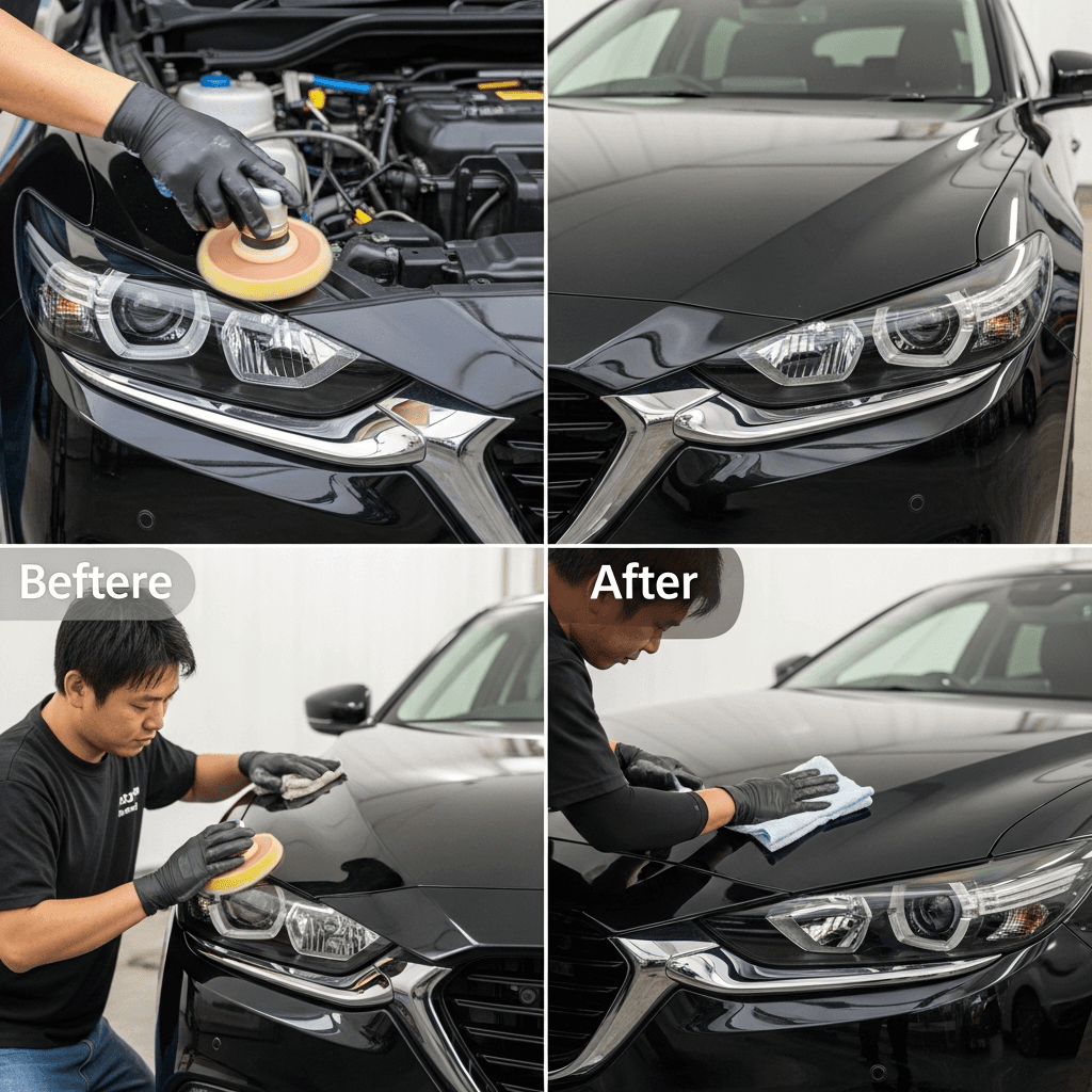 ヘッドライト黄ばみ除去+ボディ鉄粉除去で輝き復活!