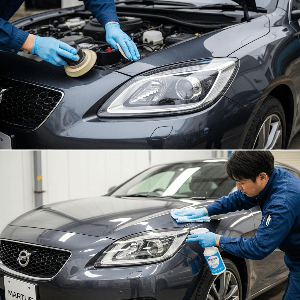 ヘッドライト黄ばみ除去+ボディ鉄粉除去で輝き復活!
