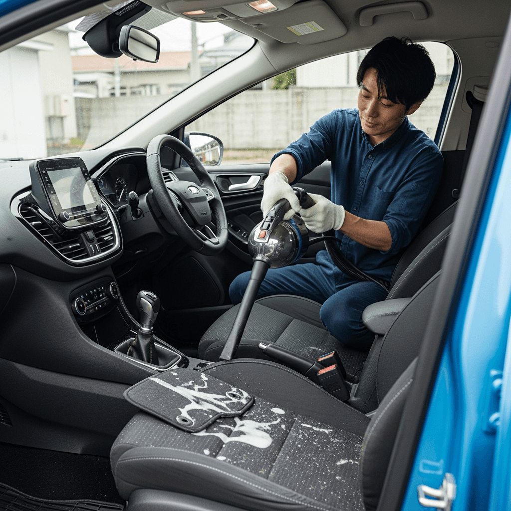 プロシードマービーは第一印象が査定の8割を決めます。シート隙間のゴミ除去、マット洗浄、樹脂パーツ艶出しで新車級の清潔感に。特に臭いゼロなら「禁煙車」扱いで+5~8万円UP。