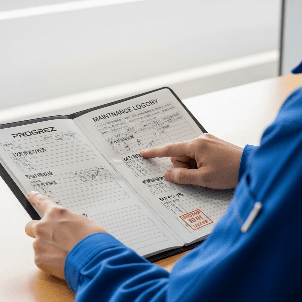 プログレの整備記録簿に定期点検(12ヶ月・24ヶ月)の履歴が全て記載されていれば「管理の行き届いた車」と高評価。特にエンジンオイル交換履歴は重要で+6~9万円の効果。