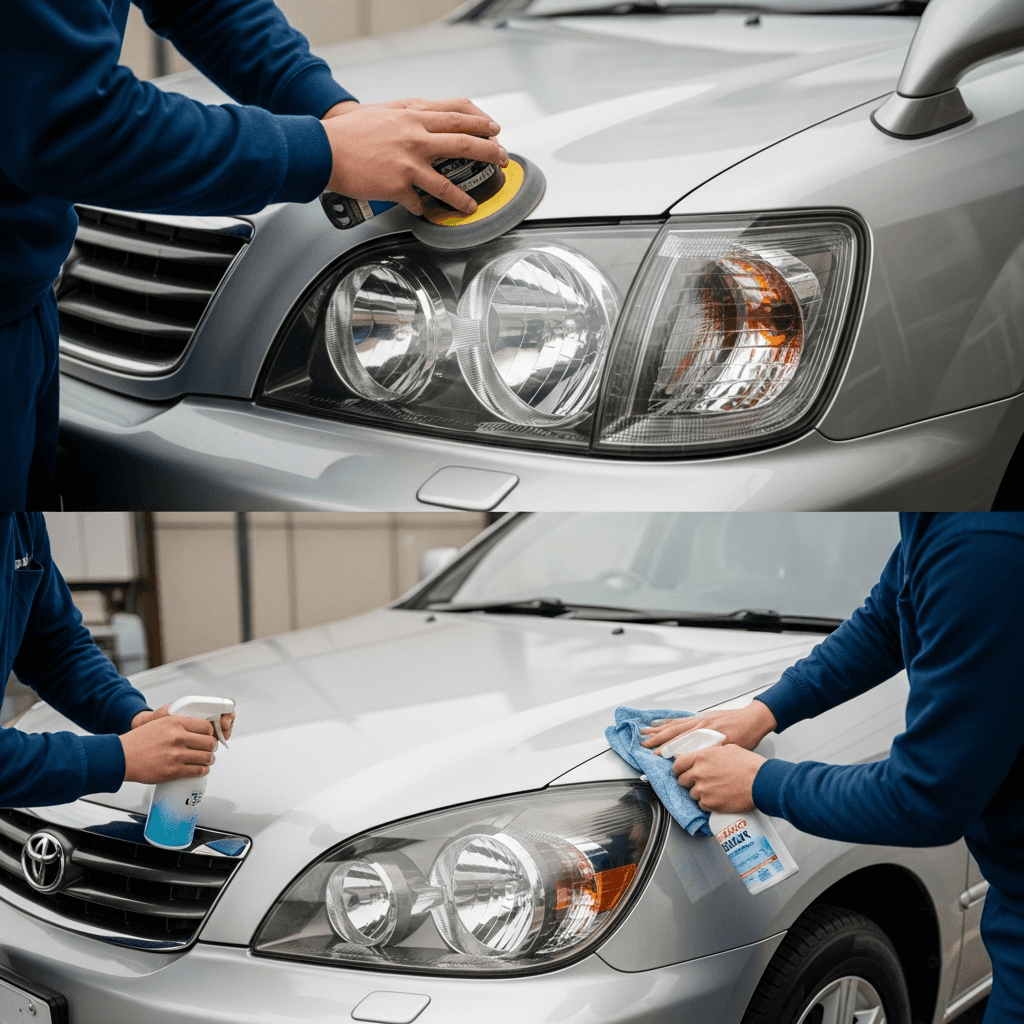ヘッドライト黄ばみ除去+ボディ鉄粉除去で輝き復活!