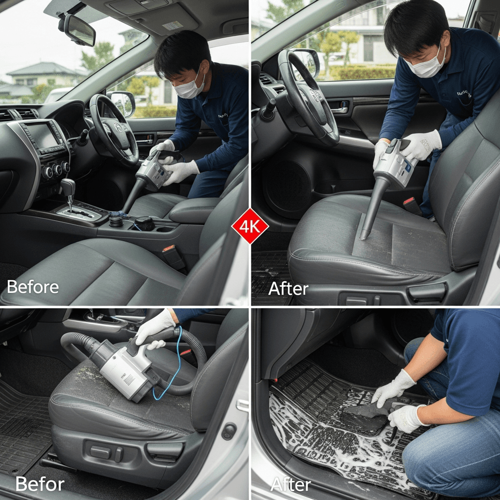 プロナードは第一印象が査定の8割を決めます。シート隙間のゴミ除去、マット洗浄、樹脂パーツ艶出しで新車級の清潔感に。特に臭いゼロなら「禁煙車」扱いで+5~8万円UP。