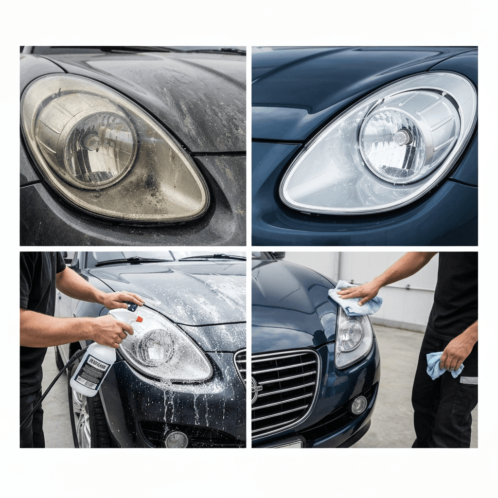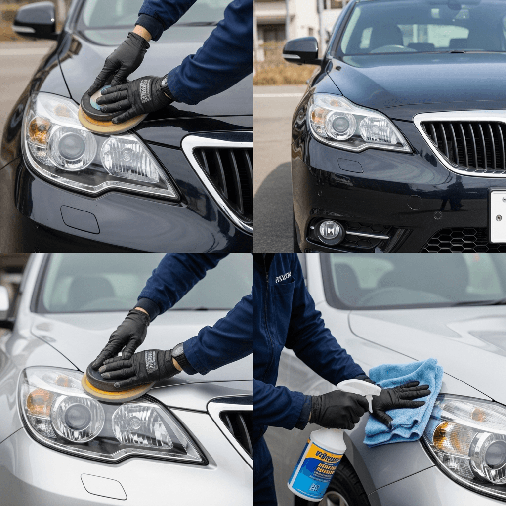 ヘッドライト黄ばみ除去+ボディ鉄粉除去で輝き復活!