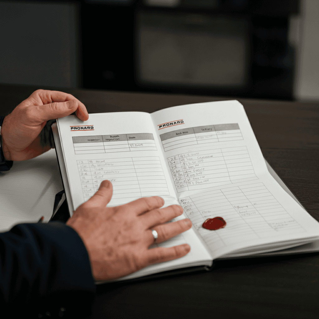プロナードの整備記録簿に定期点検(12ヶ月・24ヶ月)の履歴が全て記載されていれば「管理の行き届いた車」と高評価。特にエンジンオイル交換履歴は重要で+6~9万円の効果。