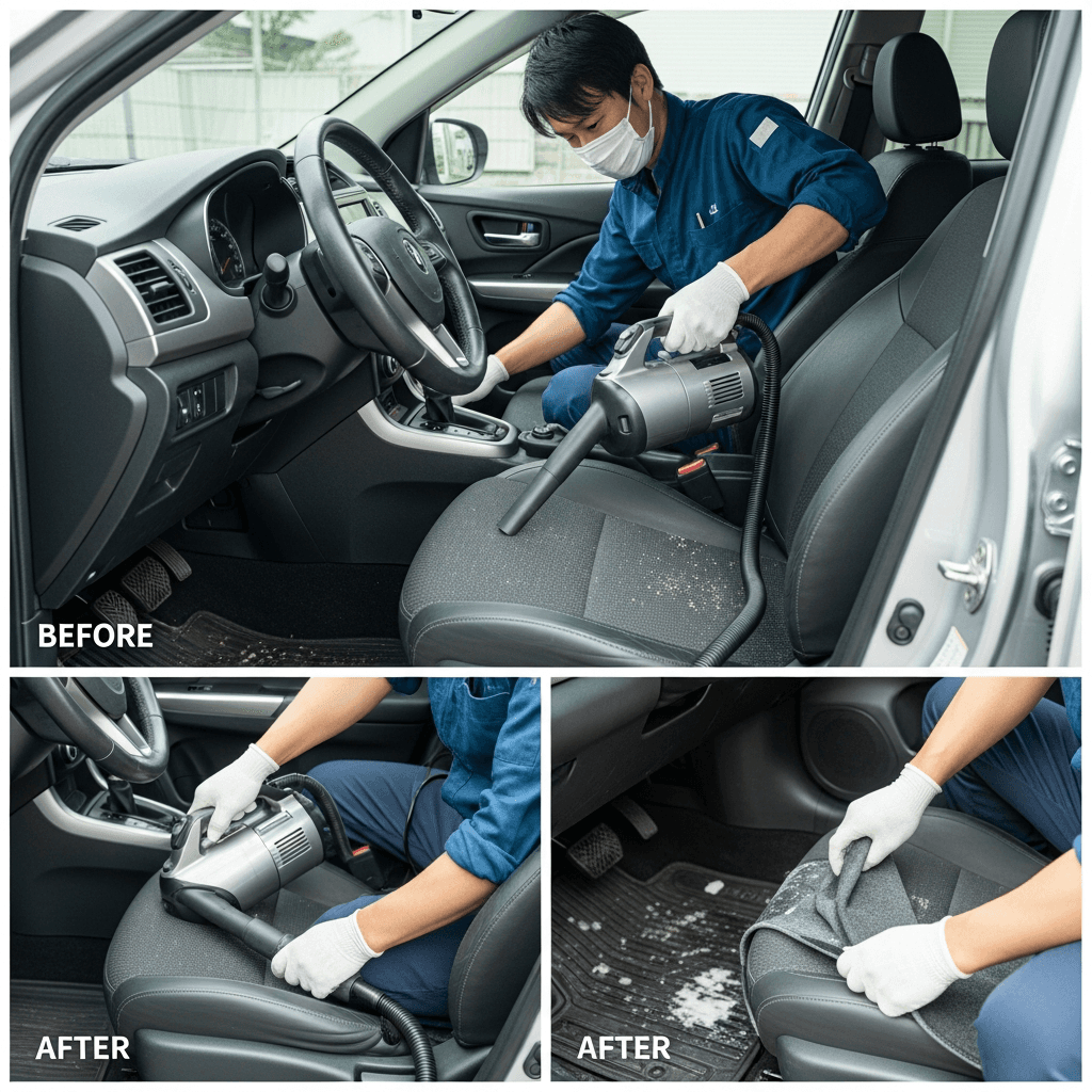 プラウディアは第一印象が査定の8割を決めます。シート隙間のゴミ除去、マット洗浄、樹脂パーツ艶出しで新車級の清潔感に。特に臭いゼロなら「禁煙車」扱いで+5~8万円UP。