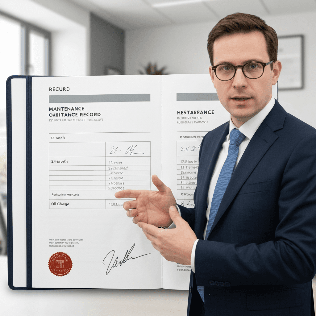 Q4スポーツバックe-tronの整備記録簿に定期点検(12ヶ月・24ヶ月)の履歴が全て記載されていれば「管理の行き届いた車」と高評価。特にエンジンオイル交換履歴は重要で+6~9万円の効果。