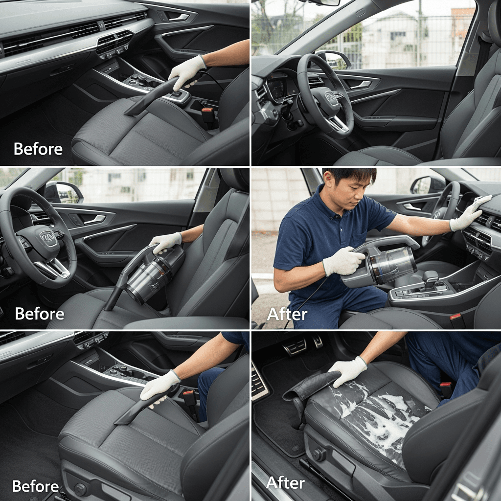 Q4スポーツバックe-tronは第一印象が査定の8割を決めます。シート隙間のゴミ除去、マット洗浄、樹脂パーツ艶出しで新車級の清潔感に。特に臭いゼロなら「禁煙車」扱いで+5~8万円UP。