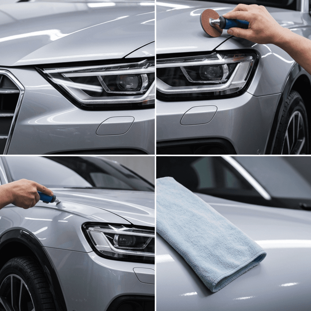 Q6スポーツバックe-tronはヘッドライトの黄ばみとボディの鉄粉が第一印象を損ねます。研磨+鉄粉除去クリーナー+ワックスで輝きを取り戻せば「程度良好」と判断され+4~7万円の効果。