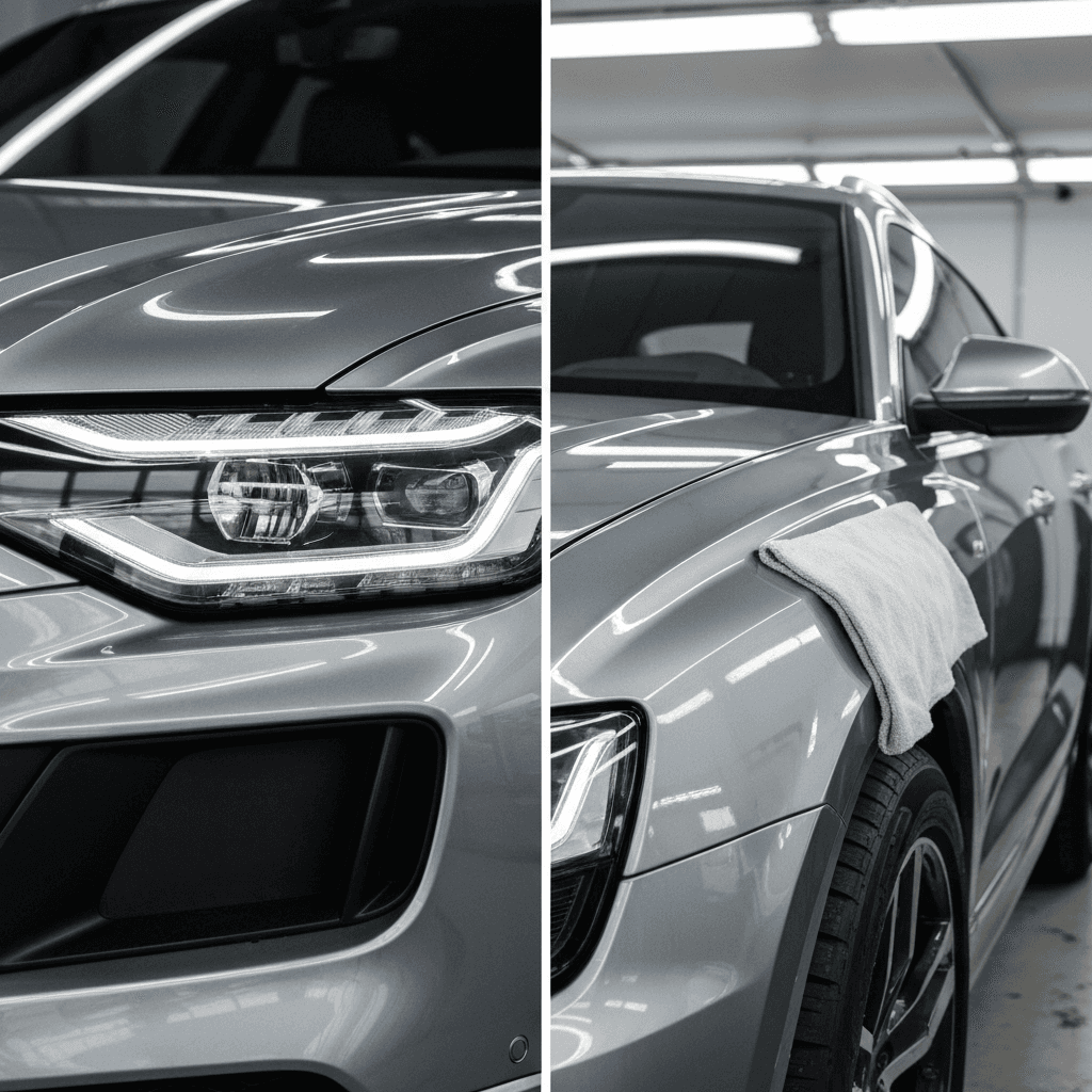 Q8はヘッドライトの黄ばみとボディの鉄粉が第一印象を損ねます。研磨+鉄粉除去クリーナー+ワックスで輝きを取り戻せば「程度良好」と判断され+4~7万円の効果。