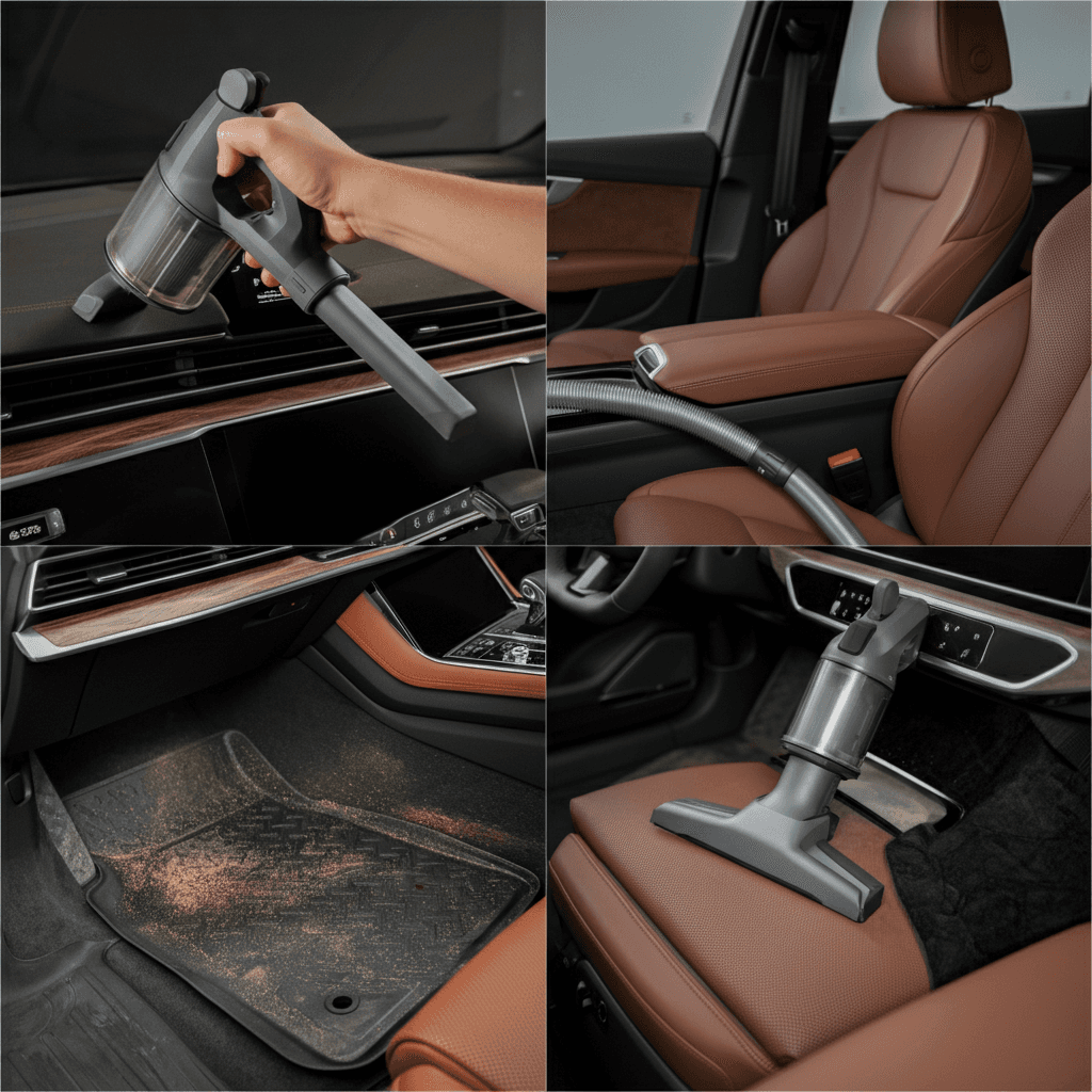 Q8スポーツバックe-tronは第一印象が査定の8割を決めます。シート隙間のゴミ除去、マット洗浄、樹脂パーツ艶出しで新車級の清潔感に。特に臭いゼロなら「禁煙車」扱いで+5~8万円UP。