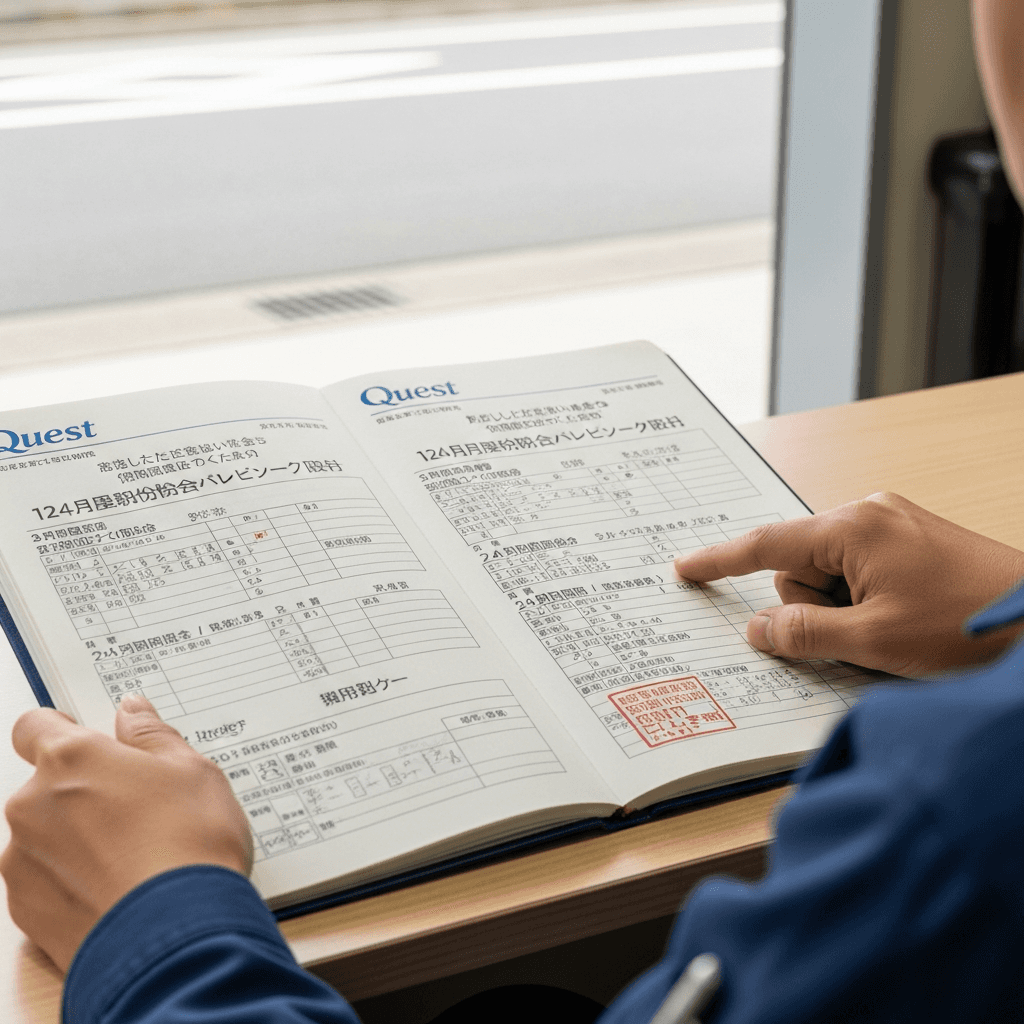 クエストの整備記録簿に定期点検(12ヶ月・24ヶ月)の履歴が全て記載されていれば「管理の行き届いた車」と高評価。特にエンジンオイル交換履歴は重要で+6~9万円の効果。