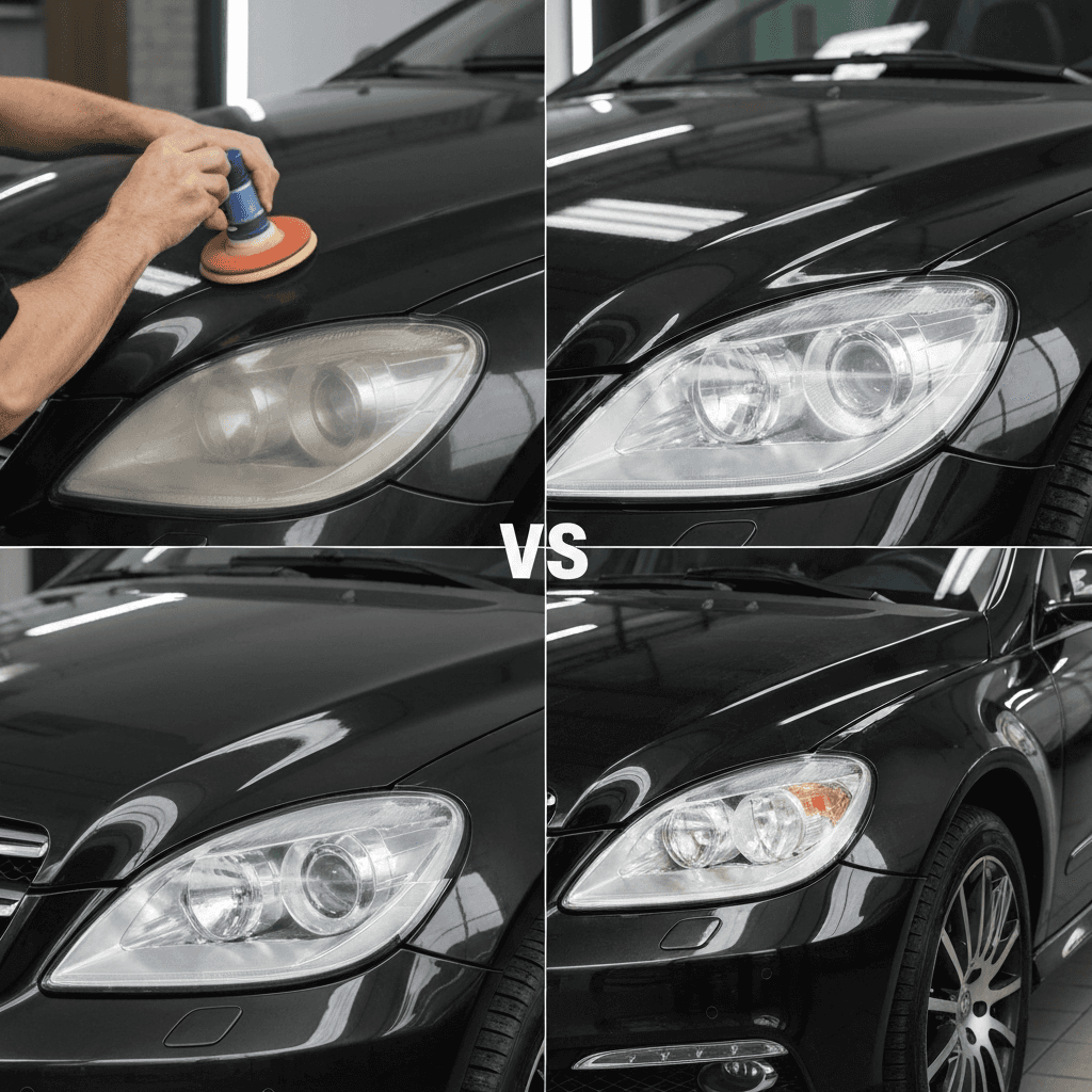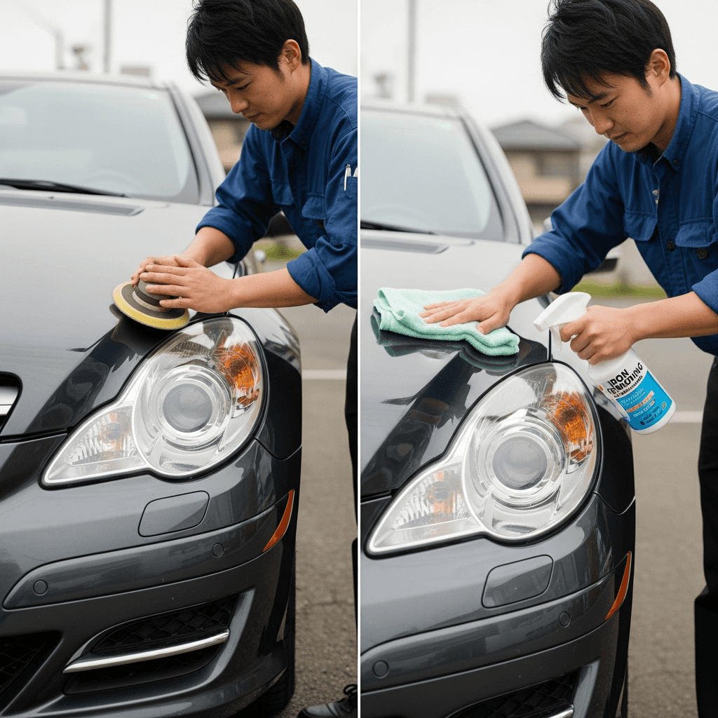 ヘッドライト黄ばみ除去+ボディ鉄粉除去で輝き復活!