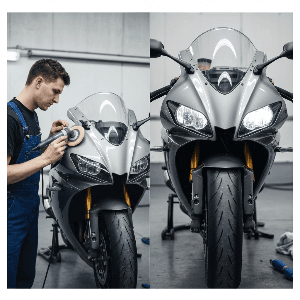 R1はヘッドライトの黄ばみとボディの鉄粉が第一印象を損ねます。研磨+鉄粉除去クリーナー+ワックスで輝きを取り戻せば「程度良好」と判断され+4~7万円の効果。