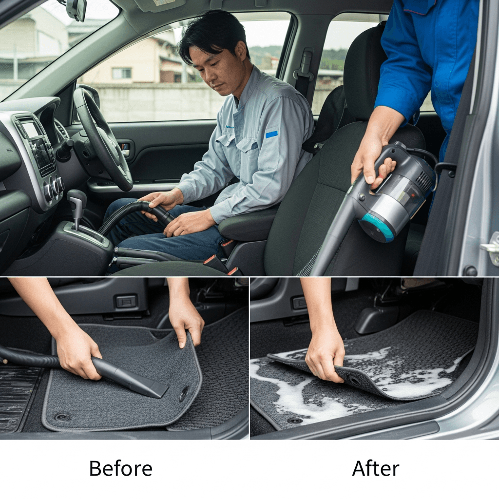 R1は第一印象が査定の8割を決めます。シート隙間のゴミ除去、マット洗浄、樹脂パーツ艶出しで新車級の清潔感に。特に臭いゼロなら「禁煙車」扱いで+5~8万円UP。