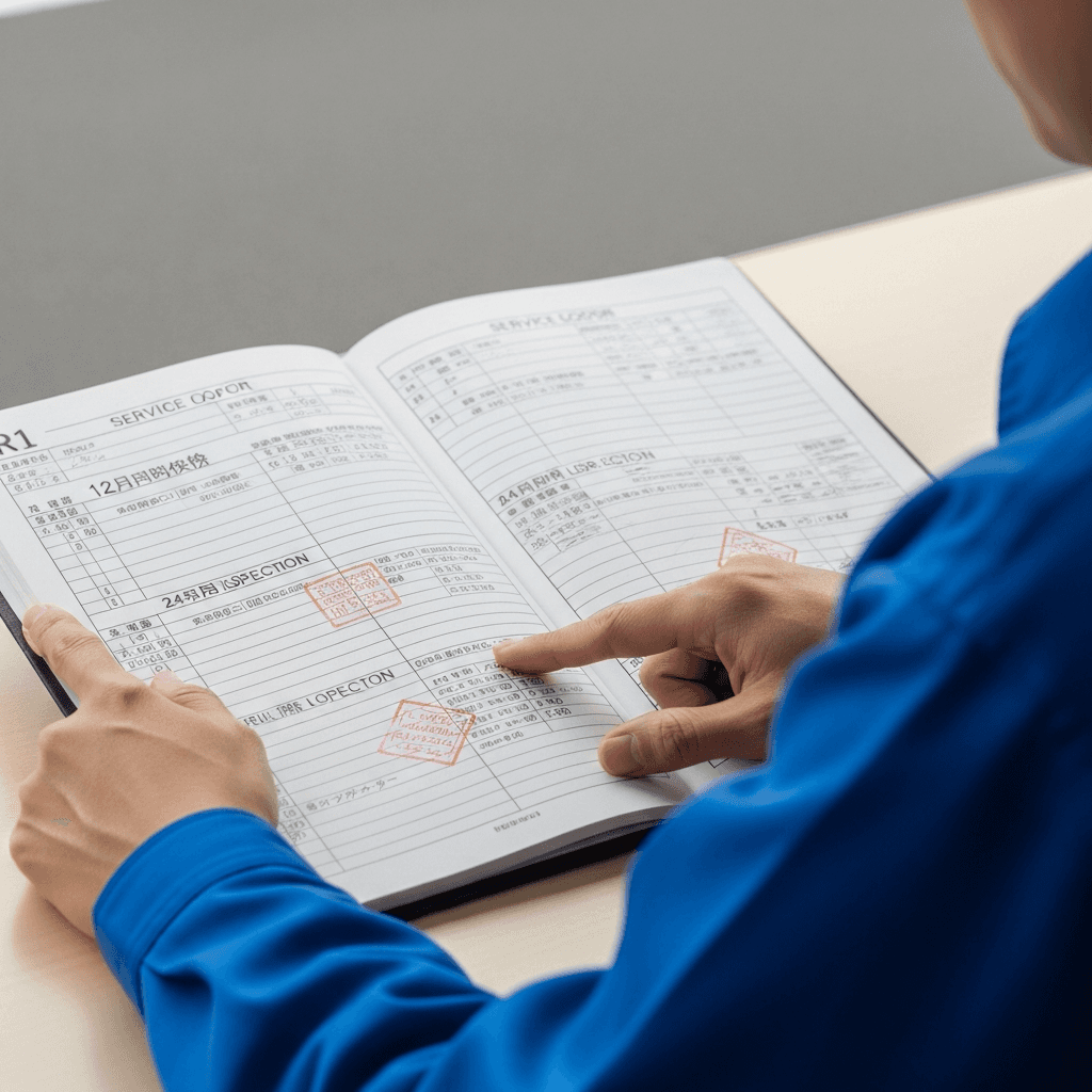 R1の整備記録簿に定期点検(12ヶ月・24ヶ月)の履歴が全て記載されていれば「管理の行き届いた車」と高評価。特にエンジンオイル交換履歴は重要で+6~9万円の効果。