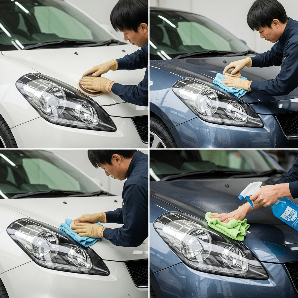 ヘッドライト黄ばみ除去+ボディ鉄粉除去で輝き復活!