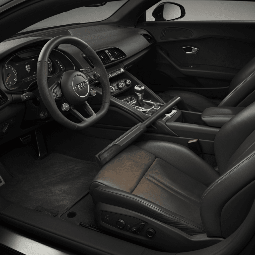 R8は第一印象が査定の8割を決めます。シート隙間のゴミ除去、マット洗浄、樹脂パーツ艶出しで新車級の清潔感に。特に臭いゼロなら「禁煙車」扱いで+5~8万円UP。