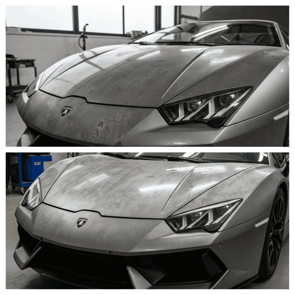 ラファーガはヘッドライトの黄ばみとボディの鉄粉が第一印象を損ねます。研磨+鉄粉除去クリーナー+ワックスで輝きを取り戻せば「程度良好」と判断され+4~7万円の効果。
