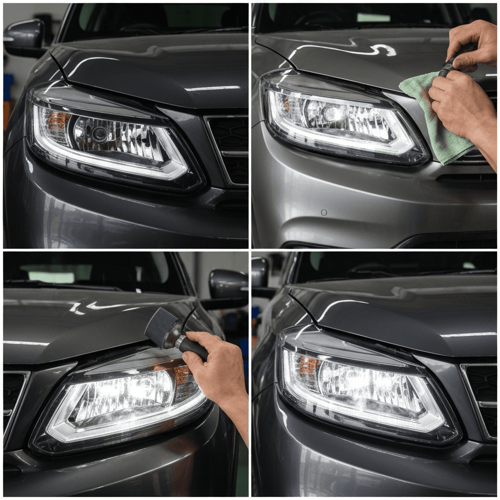 ヘッドライト黄ばみ除去+ボディ鉄粉除去で輝き復活!