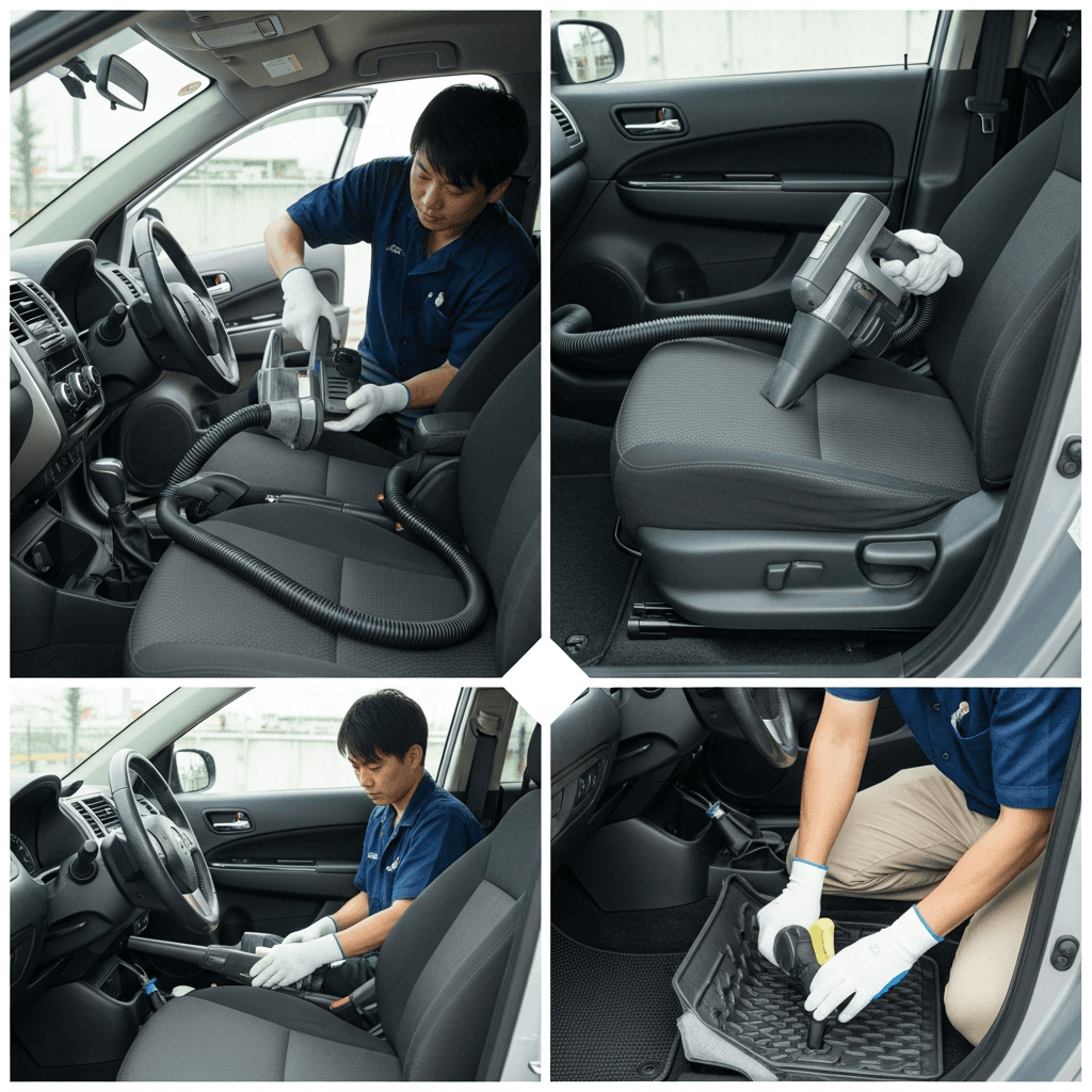 ラウムは第一印象が査定の8割を決めます。シート隙間のゴミ除去、マット洗浄、樹脂パーツ艶出しで新車級の清潔感に。特に臭いゼロなら「禁煙車」扱いで+5~8万円UP。
