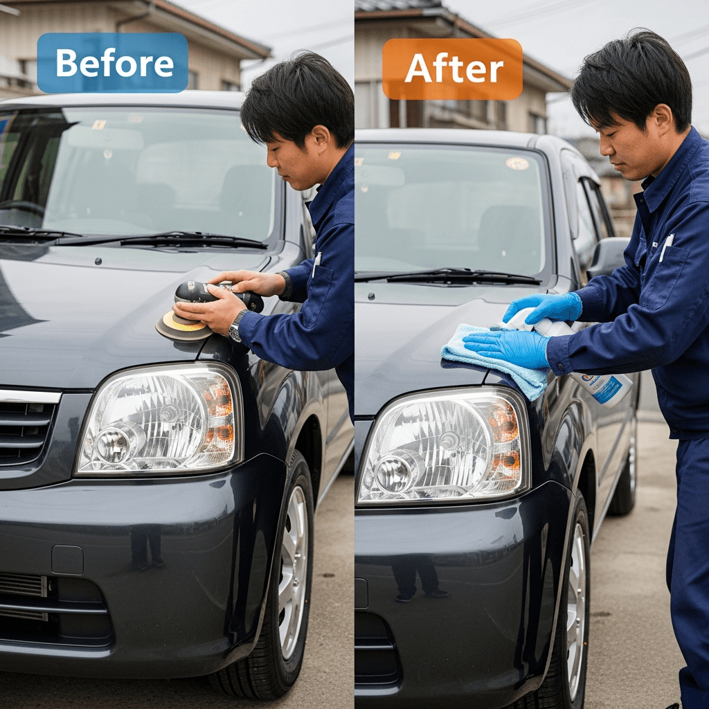 ラウムはヘッドライトの黄ばみとボディの鉄粉が第一印象を損ねます。研磨+鉄粉除去クリーナー+ワックスで輝きを取り戻せば「程度良好」と判断され+4~7万円の効果。