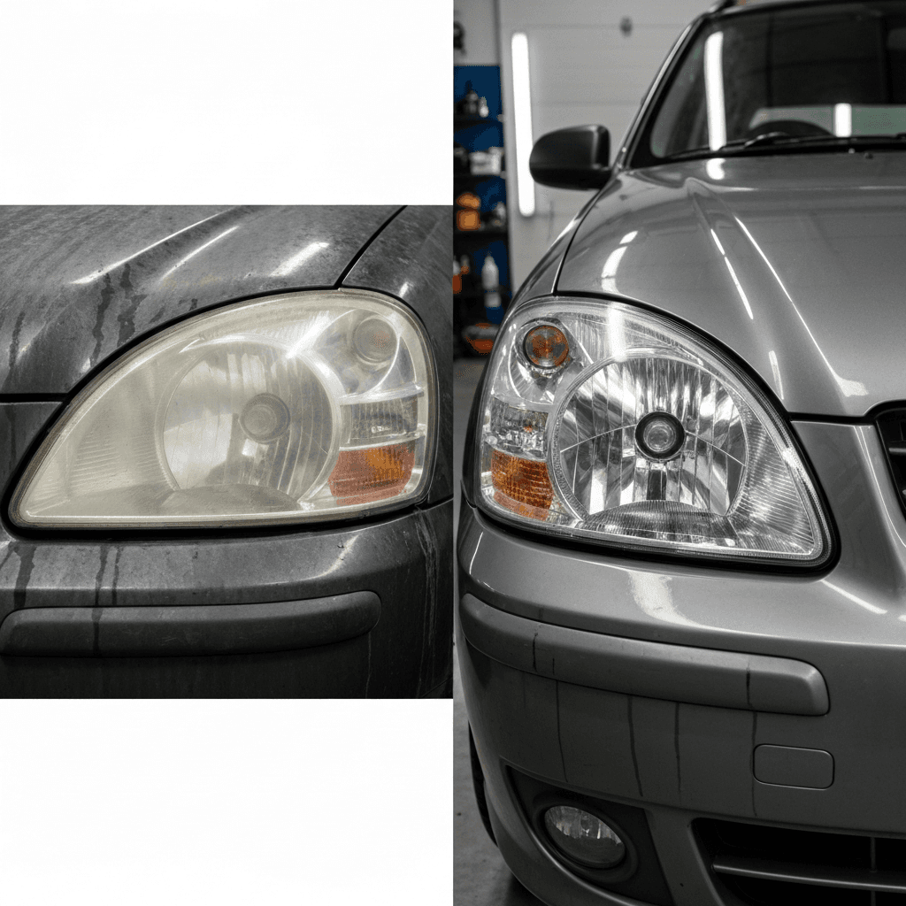 ヘッドライト黄ばみ除去+ボディ鉄粉除去で輝き復活!
