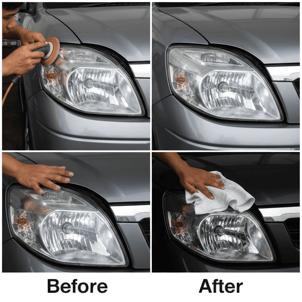 ヘッドライト黄ばみ除去+ボディ鉄粉除去で輝き復活!