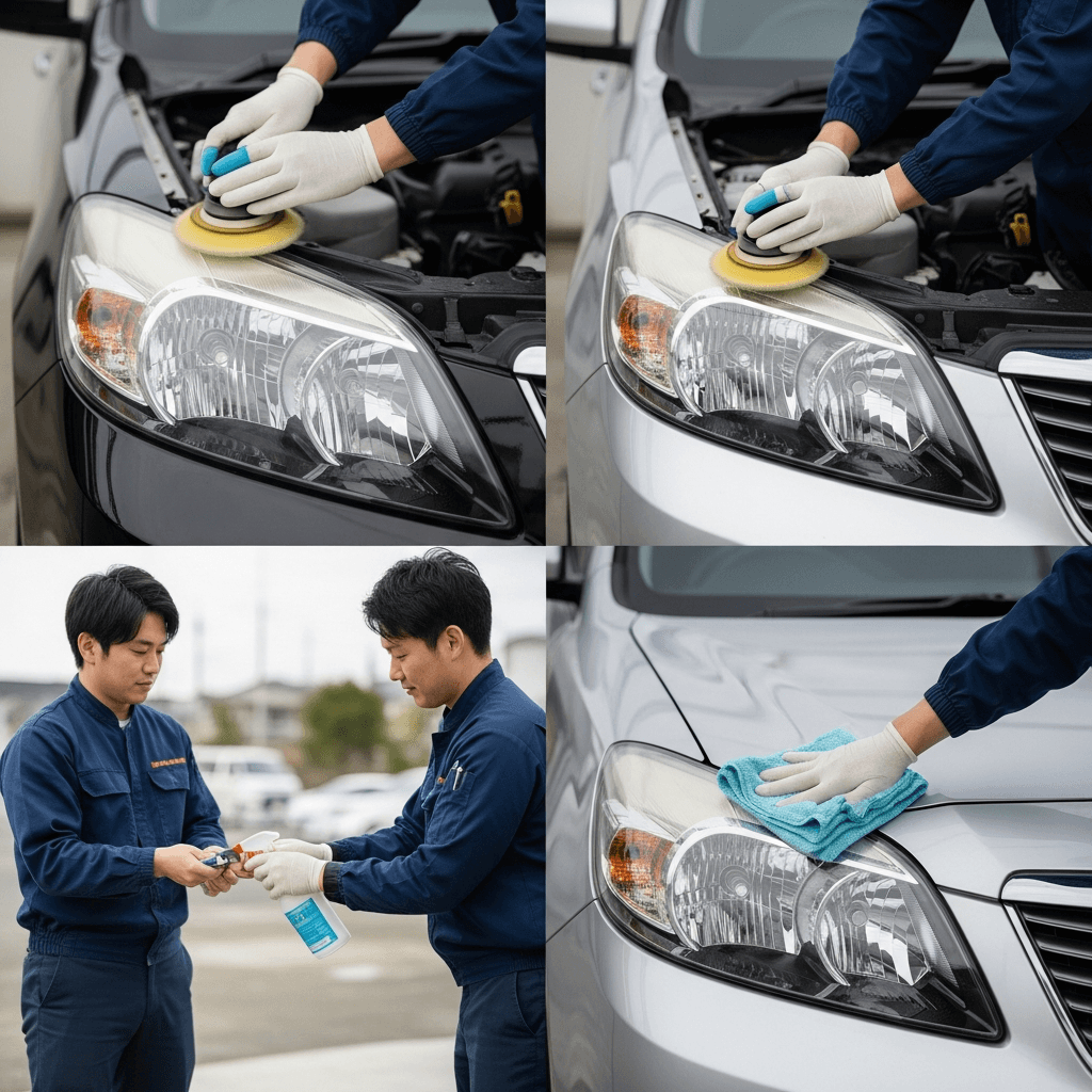 ヘッドライト黄ばみ除去+ボディ鉄粉除去で輝き復活!