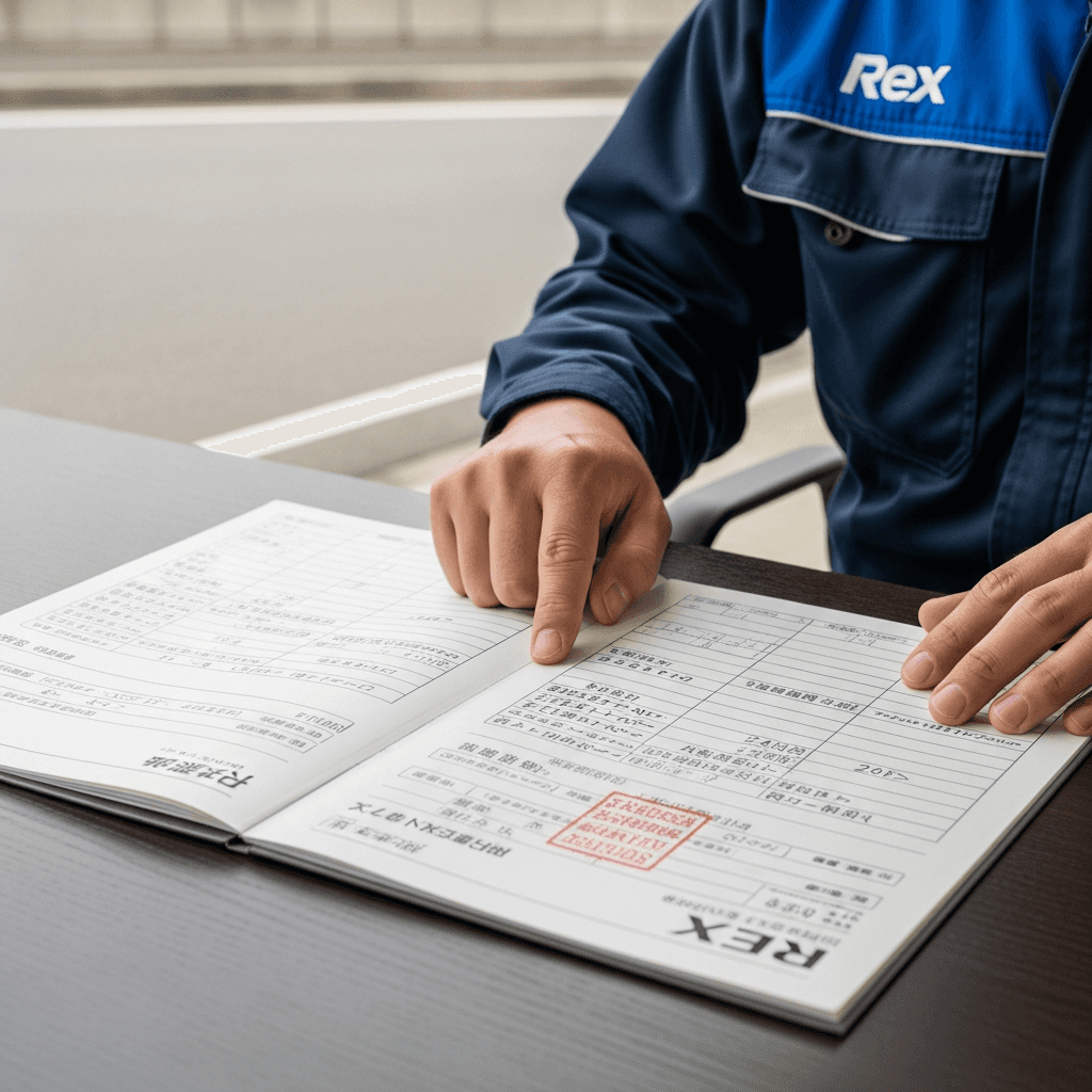 レックスの整備記録簿に定期点検(12ヶ月・24ヶ月)の履歴が全て記載されていれば「管理の行き届いた車」と高評価。特にエンジンオイル交換履歴は重要で+6~9万円の効果。