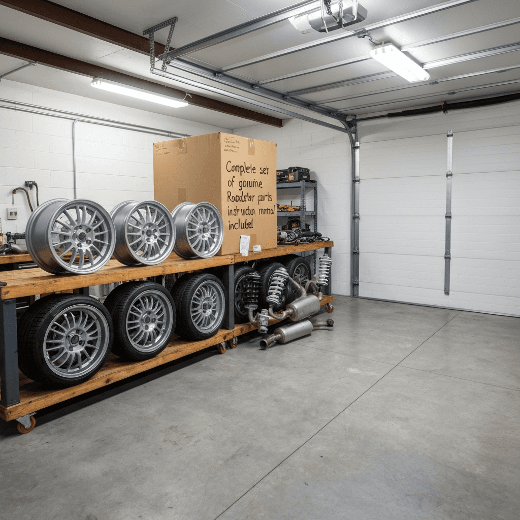 ロードスターはカスタム車両が多いですが、純正マフラー・サスペンション・ホイールが保管されていれば査定額は下がりません。「純正戻し可能」をアピールすることで+7~10万円の価値創出。