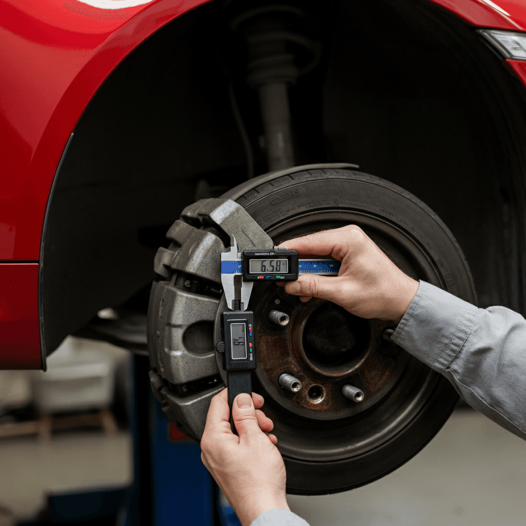 スポーツカーはブレーキとタイヤが査定の最重要項目。パッド残量6mm以上、タイヤ溝5mm以上を写真+ノギス測定値で証明すれば、「走行性能良好」の安心感を与え+8~12万円の評価UP。