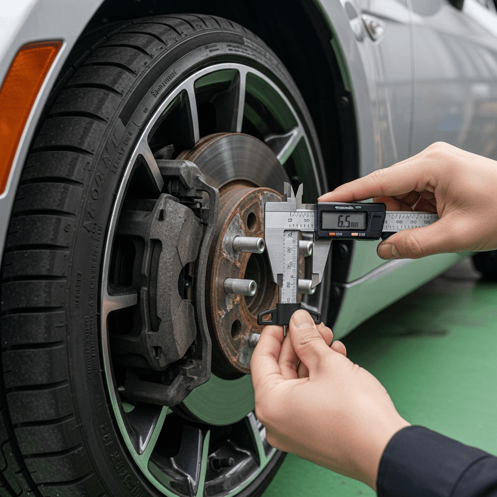 スポーツカーはブレーキとタイヤが査定の最重要項目。パッド残量6mm以上、タイヤ溝5mm以上を写真+ノギス測定値で証明すれば、「走行性能良好」の安心感を与え+8~12万円の評価UP。