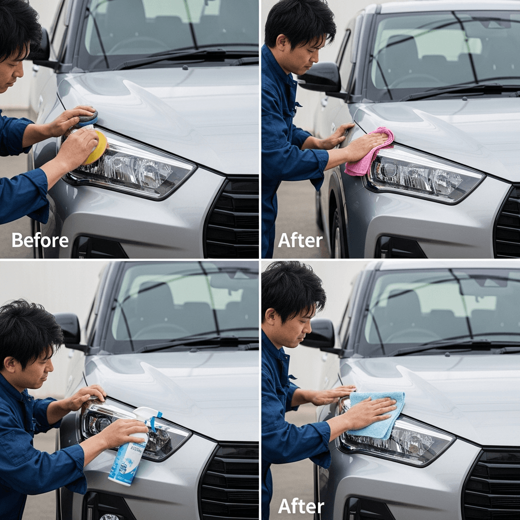 ヘッドライト黄ばみ除去+ボディ鉄粉除去で輝き復活!