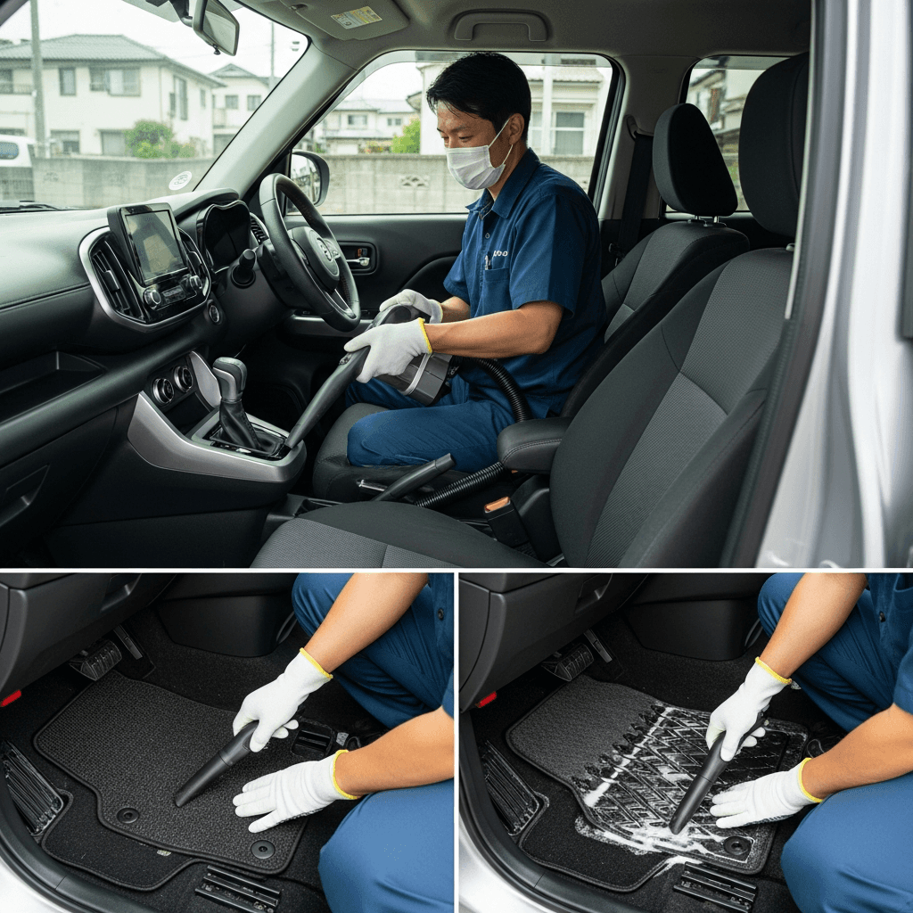 ロッキーは第一印象が査定の8割を決めます。シート隙間のゴミ除去、マット洗浄、樹脂パーツ艶出しで新車級の清潔感に。特に臭いゼロなら「禁煙車」扱いで+5~8万円UP。