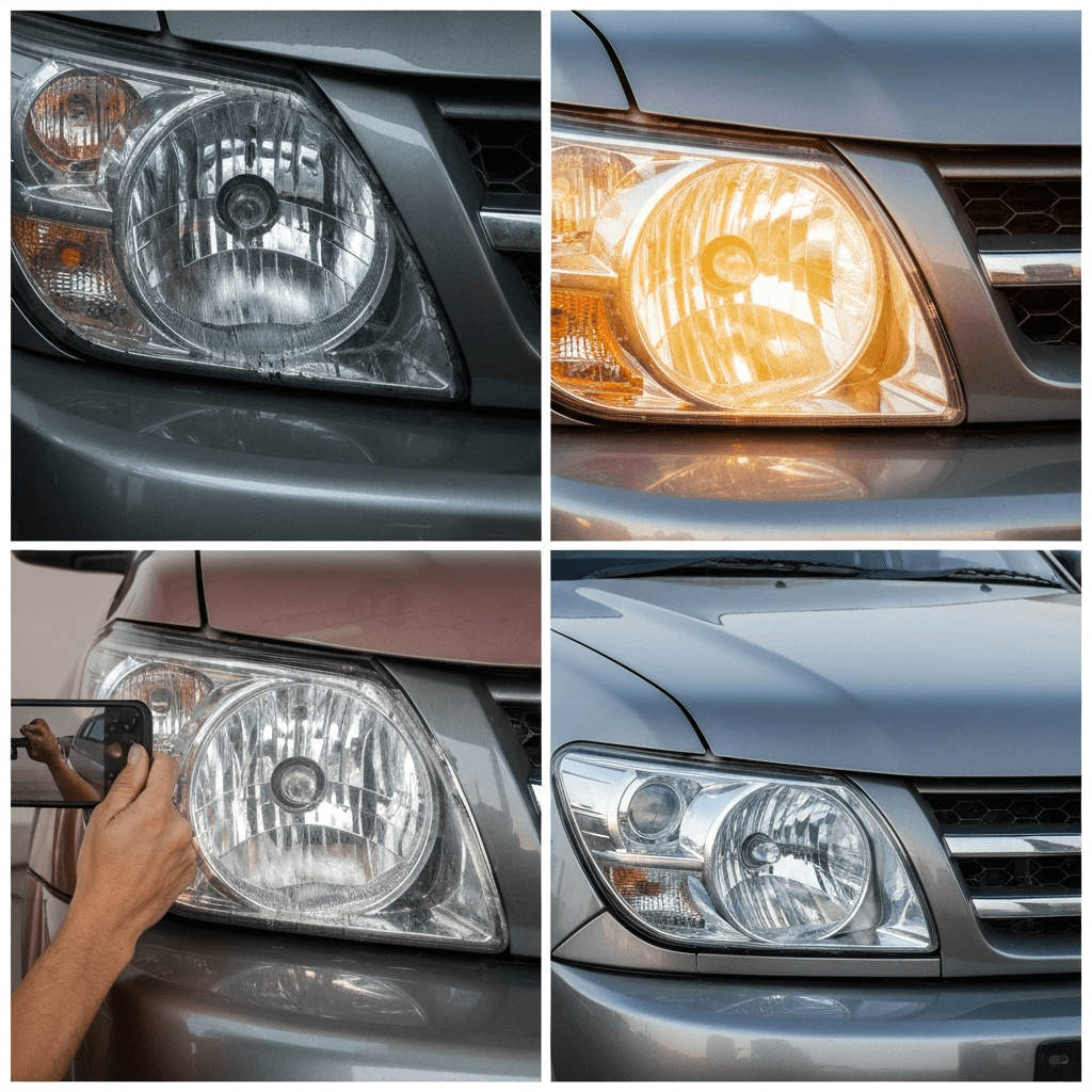 ヘッドライト黄ばみ除去+ボディ鉄粉除去で輝き復活!